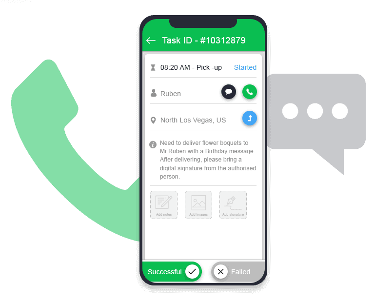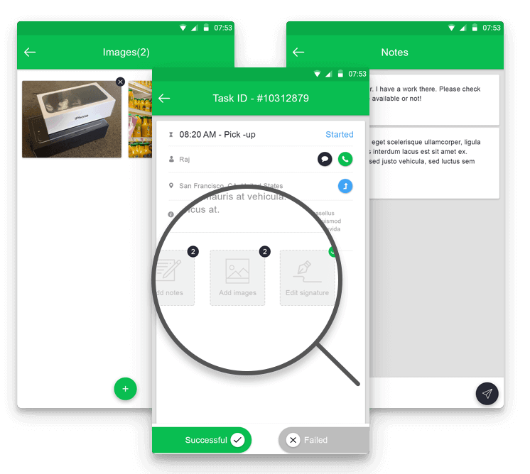 As a proof of successful delivery, the agents may collect images or signature, as checked in and set by the admin, as a proof of delivery.